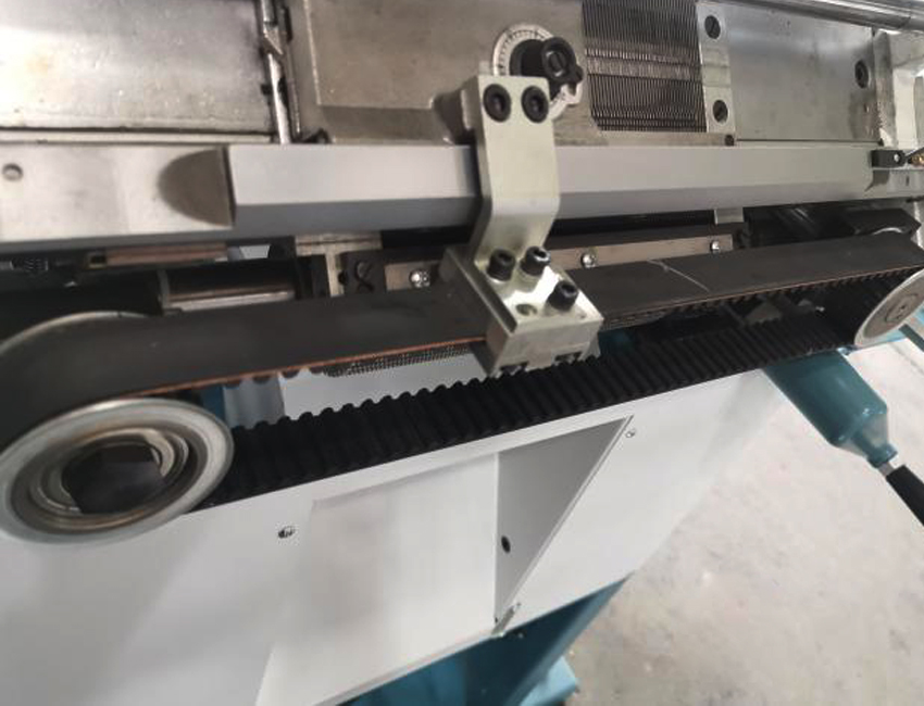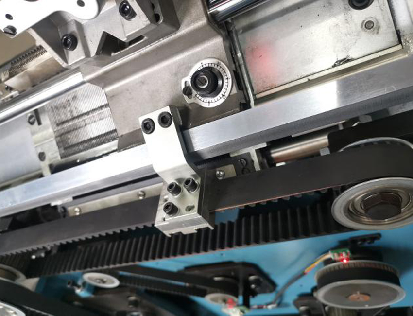 前后機(jī)頭由兩根同步帶單獨(dú)控制,并且前后同步帶輪與伺服電機(jī)同軸轉(zhuǎn)動(dòng),受力更均勻,使快速移動(dòng)的機(jī)頭平穩(wěn)運(yùn)行。